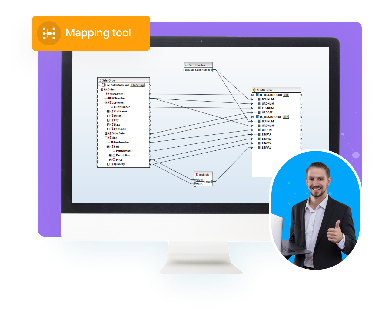 Gain access to a powerful visual mapping tool to transform incoming or outgoing data. Send information from corporate databases as XML or EDI, or convert, then store and process the received files.