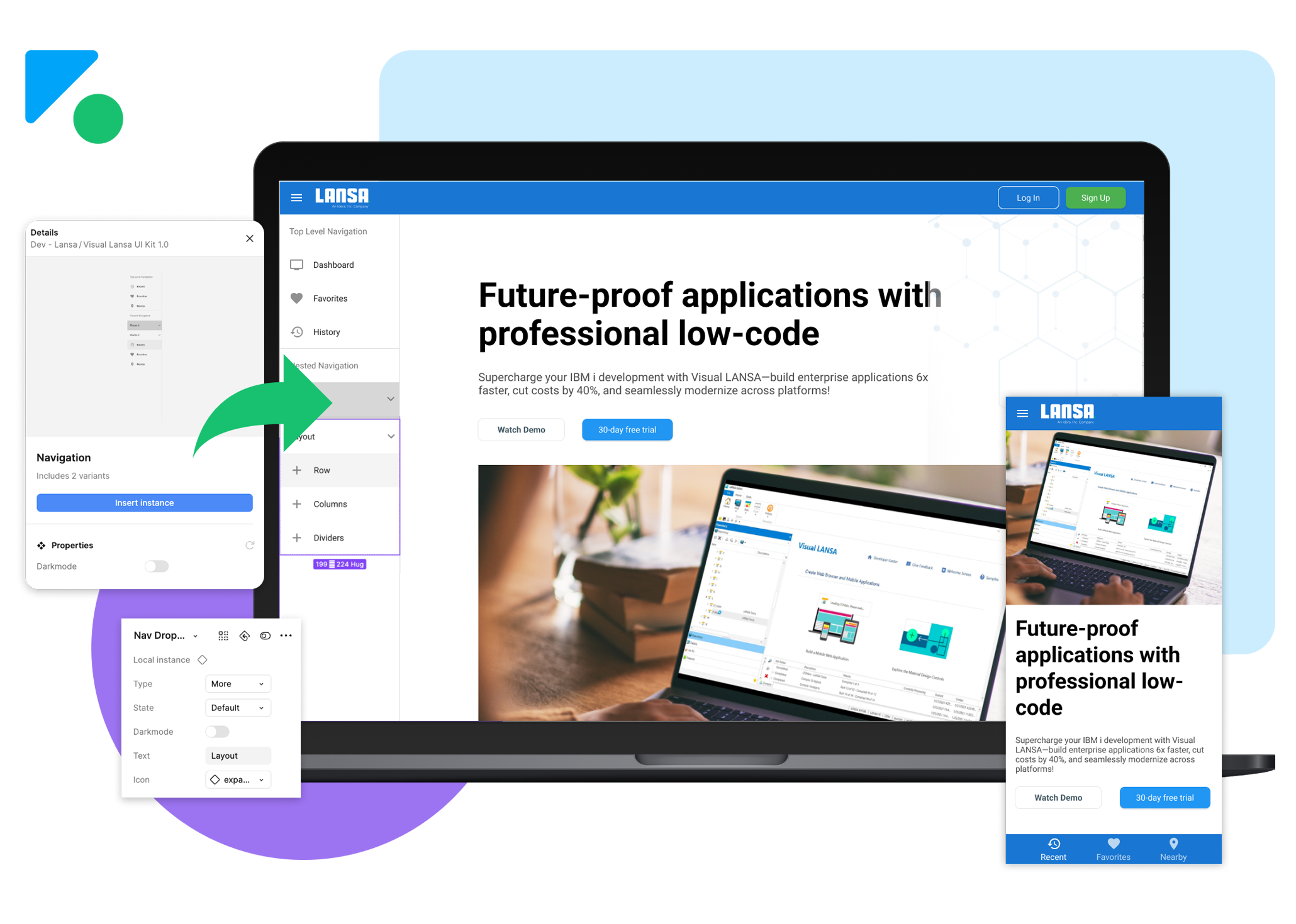 Visualize your application’s vision using Figma, get stakeholder buy-in quicker, and create high-fidelity mockups for your developers using LANSA’s free Material UI kit.