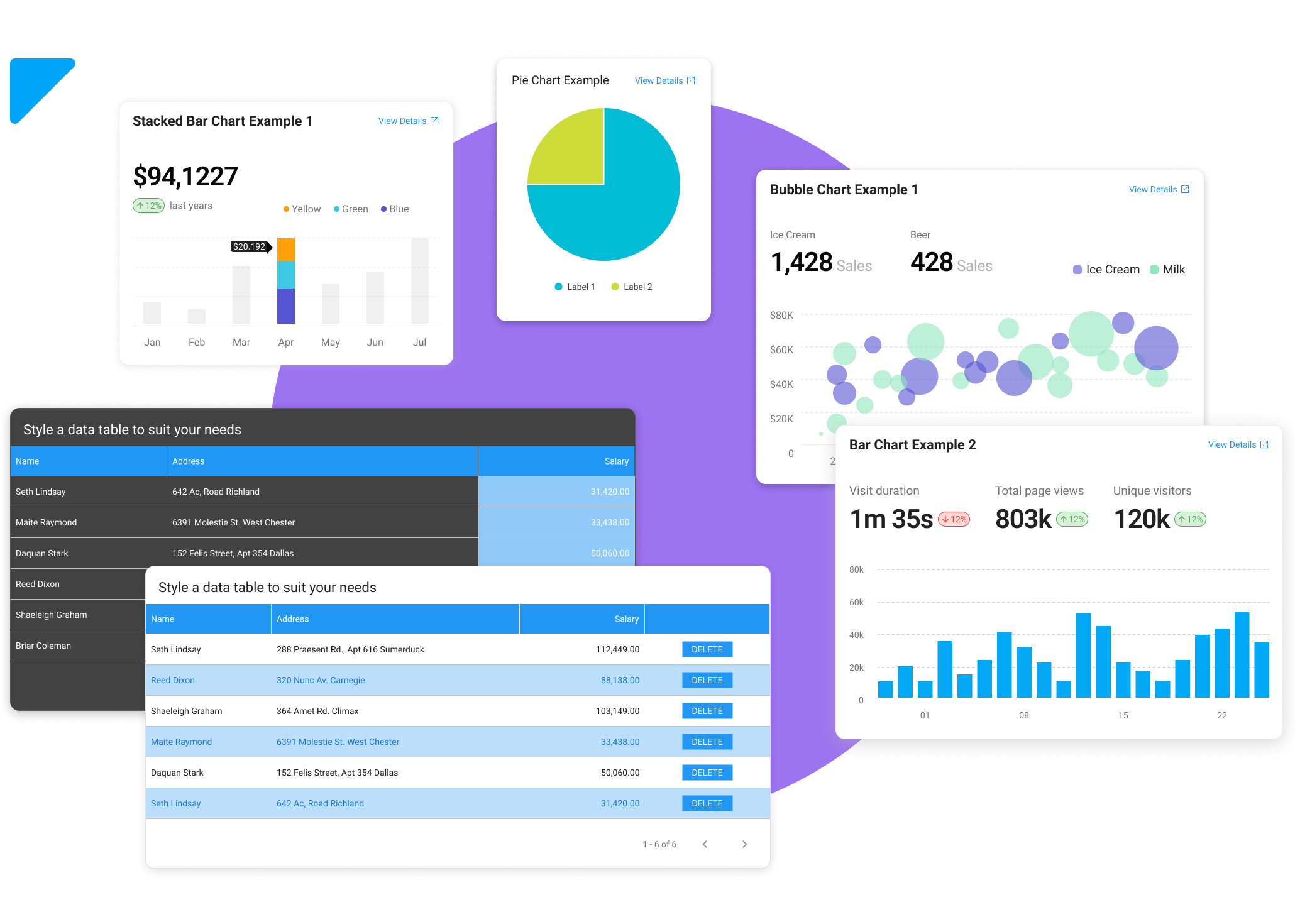 Save time worrying about the best way to organize your data. This UI Kit provides standardized and polished layouts for tables and charts that ensure readability and engagement.