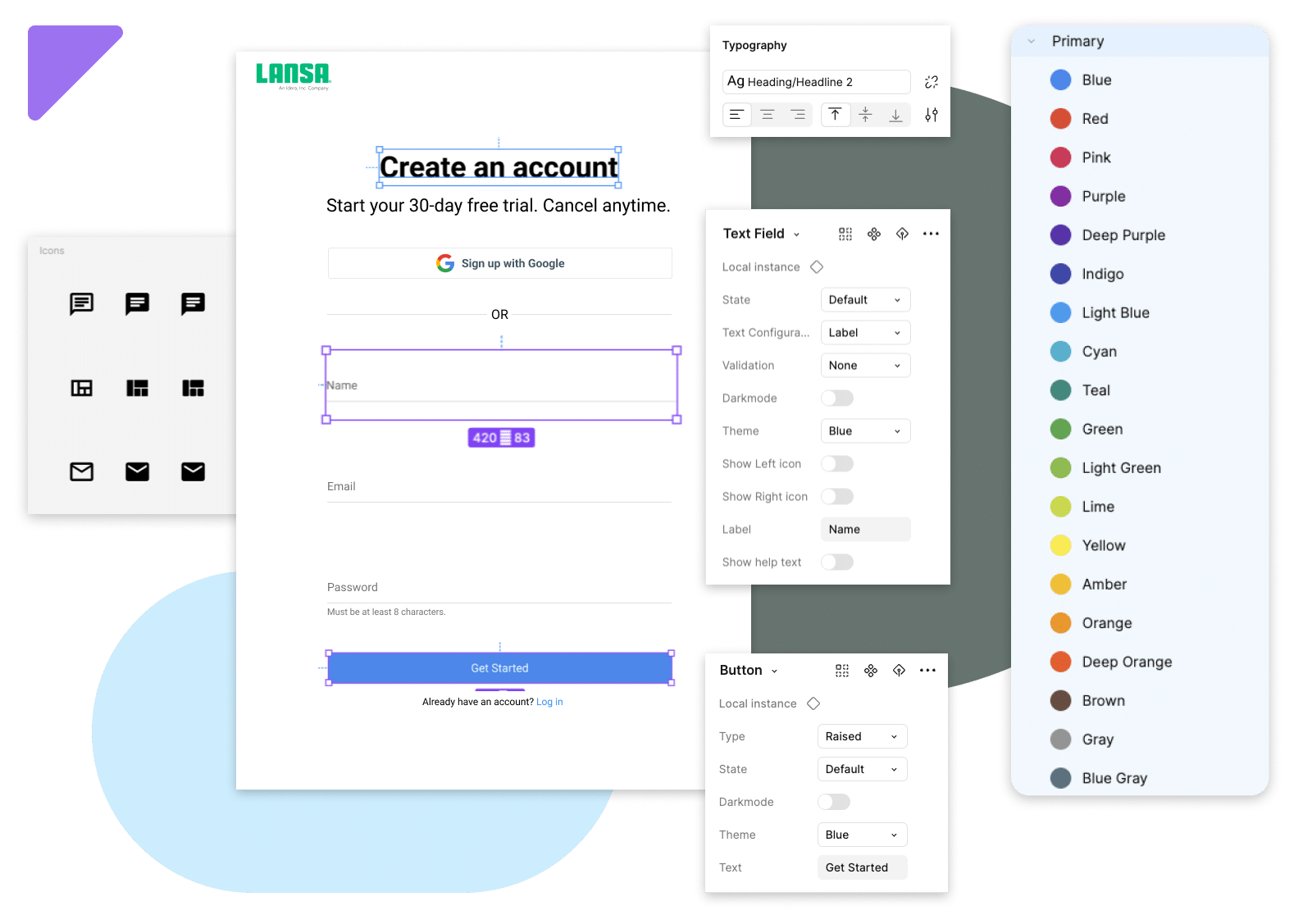Visualize your application’s vision using Figma, get stakeholder buy-in quicker, and create high-fidelity mockups for your developers using LANSA’s free Material UI kit.