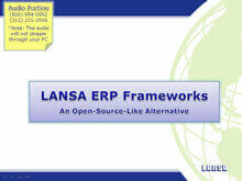 Bob Gleisner, Director of Professional Services, LANSA, gives an overview and demonstration of LANSA ERP Frameworks – a fully integrated suite that offers one comprehensive, enterprise-wide solution for manufacturers and distributors alike. Bob draws on over 20 years experience working with a variety of IBM midrange ERP systems to address the issues of ERP implementation.
